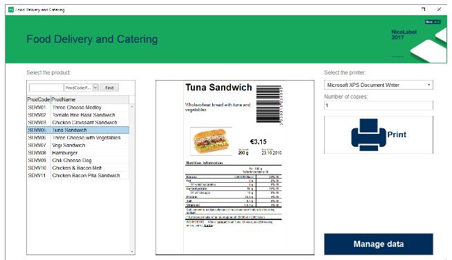 NiceLabel ha sviluppato un libero, ma completo “out-of-the-box-solution”, che consente ai clienti avviare la stampa allergeni conformi e le etichette nutrizionali in pochi minuti. La soluzione contiene tutto il necessario, compreso un modello di etichetta predefinito, una soluzione di stampa pre-configurato per la stampa razionalizzato di allergeni e etichette nutrizionali e un modulo di gestione di database per la gestione di tutti i dati di prodotto. La soluzione consente al personale autorizzato a gestire i dati in una semplice interfaccia per cui le imprese non hanno bisogno di investire in soluzioni di database complesse.