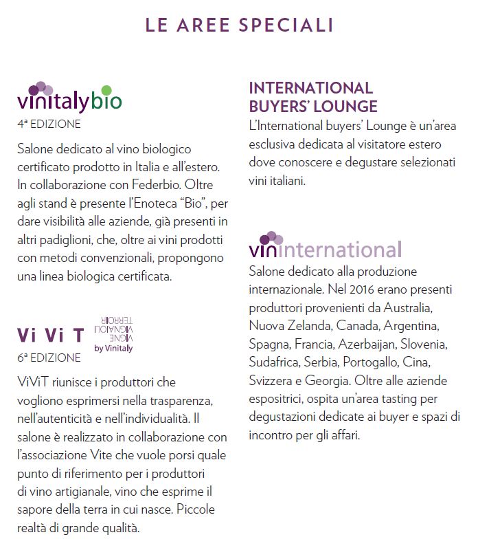 Vinitaly offre in più – come caratteristica esclusiva – la possibilità di trovare, grazie alla contemporaneità con il Salone Internazionale Sol&Agrifood, il meglio delle produzioni enologiche ed agroalimentari e, con Enolitech, le tecnologie e i mezzi tecnici per le filiere vino e olio.