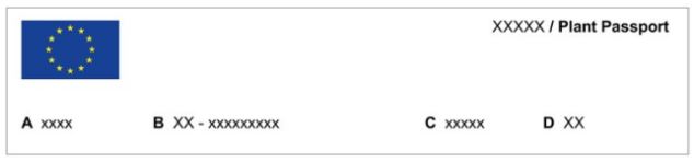 Il nuovo passaporto ha un layout fisso e deve essere applicato all’unità commerciale più piccola, ad esempio come un vaso, vassoio o scatola. Le informazioni sul passaporto devono essere leggibili a occhio nudo e sono costituiti dalle seguenti informazioni: Angolo in alto a sinistra: la bandiera dell’UE (a colori o in bianco e nero) Angolo in alto a destra: Passaporto della Pianta (nella lingua ufficiale del paese di origine) / Plant Passport