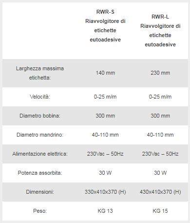 RWR è una serie di svolgitori / riavvolgitori di etichette autoadesive in rotolo costruiti per un utilizzo industriale, robusti, completamente costruiti in acciaio, dotati di una grande base di appoggio per una stabile connessione alla stampante.