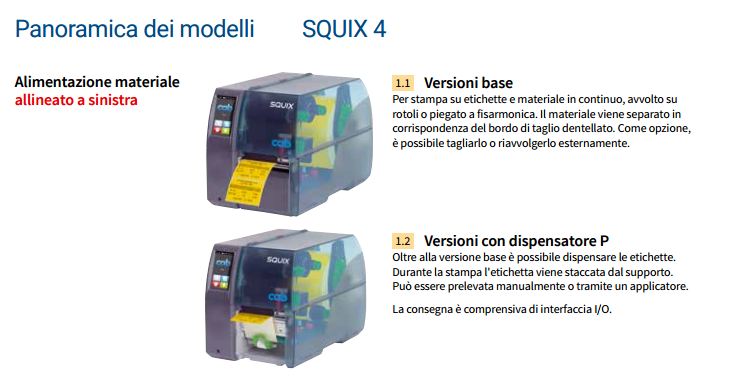 Utilizzate sia in impieghi stand-alone che in applicazioni per PC o di rete, le robuste stampanti SQUIX soddisfano qualunque esigenza. Il processore ad alta velocità garantisce una rapida elaborazione della sessione di stampa e rende immediatamente disponibili le etichette richieste.
