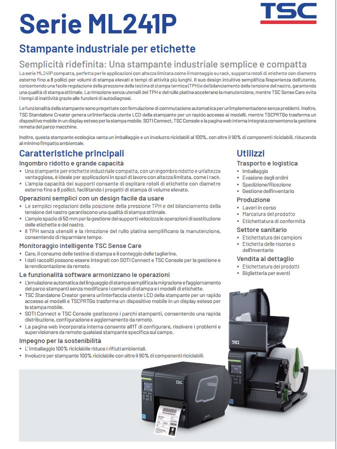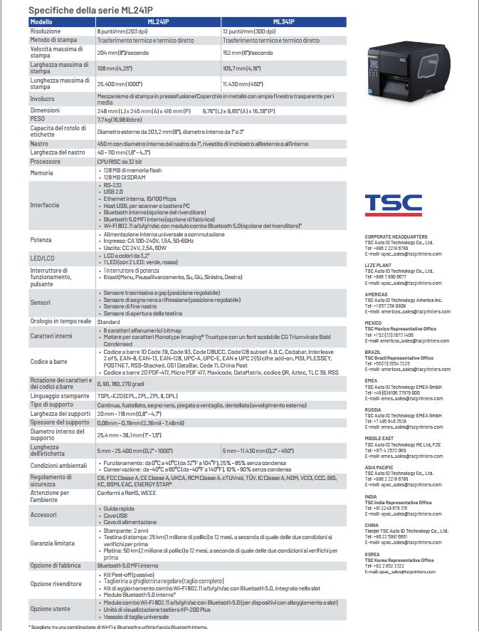 Manuale TSC ML 240 Series – Dimensioni 5.1 MByte