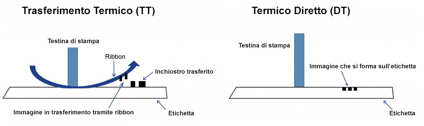 Le odierne stampanti di etichette utilizzano uno dei due metodi operativi: termica diretta e trasferimento termico. Entrambe queste stampanti utilizzano testine di stampa termica per stampare sul materiale dell’etichetta, sebbene utilizzino queste testine di stampa in modi molto diversi:
